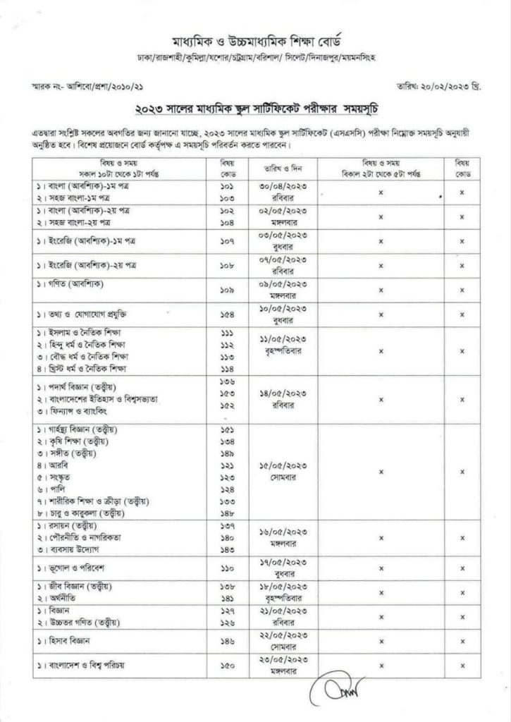 SSC 2023 Routine Final Update. এস.এস.সি ২০২৩ সালের নতুন রুটিন আপডেট